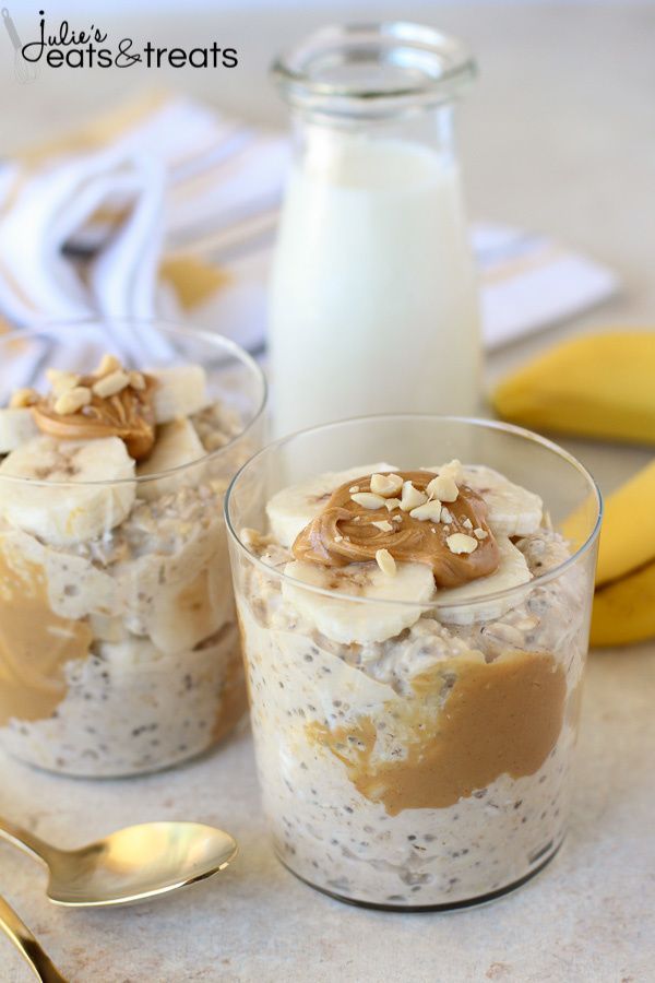 In a large bowl combine milk, chia seeds, syrup and 2 tablespoons peanut butter. Stir in oats. Cover and refrigerate (or transfer to individual bowls/glasses/jars). Refrigerate overnight, until the oats...