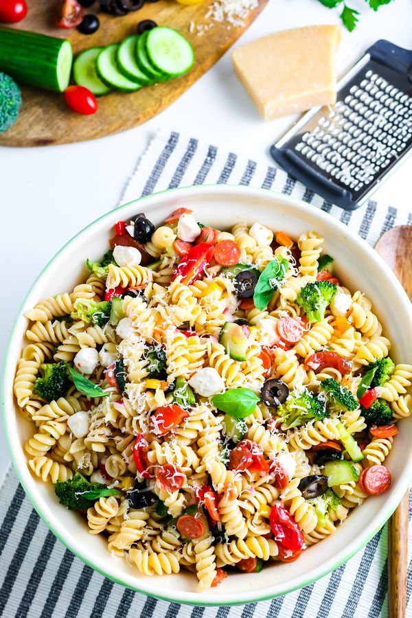 This quick and easy classic Italian Pasta Salad is the perfect side to share. Pasta is tossed with Italian dressing, crunchy vegetables and yummy Italian flavors for this delicious dish. This is the perfect make ahead dish when you pan to fire up the grill for dinner, or have the leftovers for an delicious lunch.