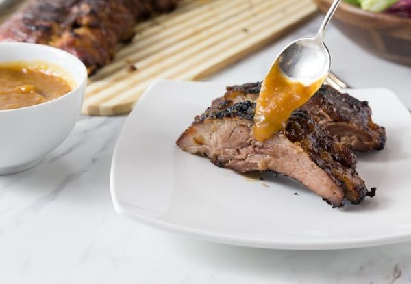Sweet and Spicy Peach Bourbon BBQ Ribs - Analida's Ethnic Spoon