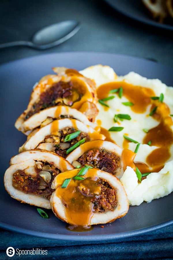 These stuffed pork chops are boneless filled with blue Stilton cheese, chopped hazelnuts & chives, and vegan fig salami seasoned with orange zest, Aleppo pepper and smoked paprika. A quick recipe that's easy enough for a weeknight dinner, yet fancy enough for entertaining!