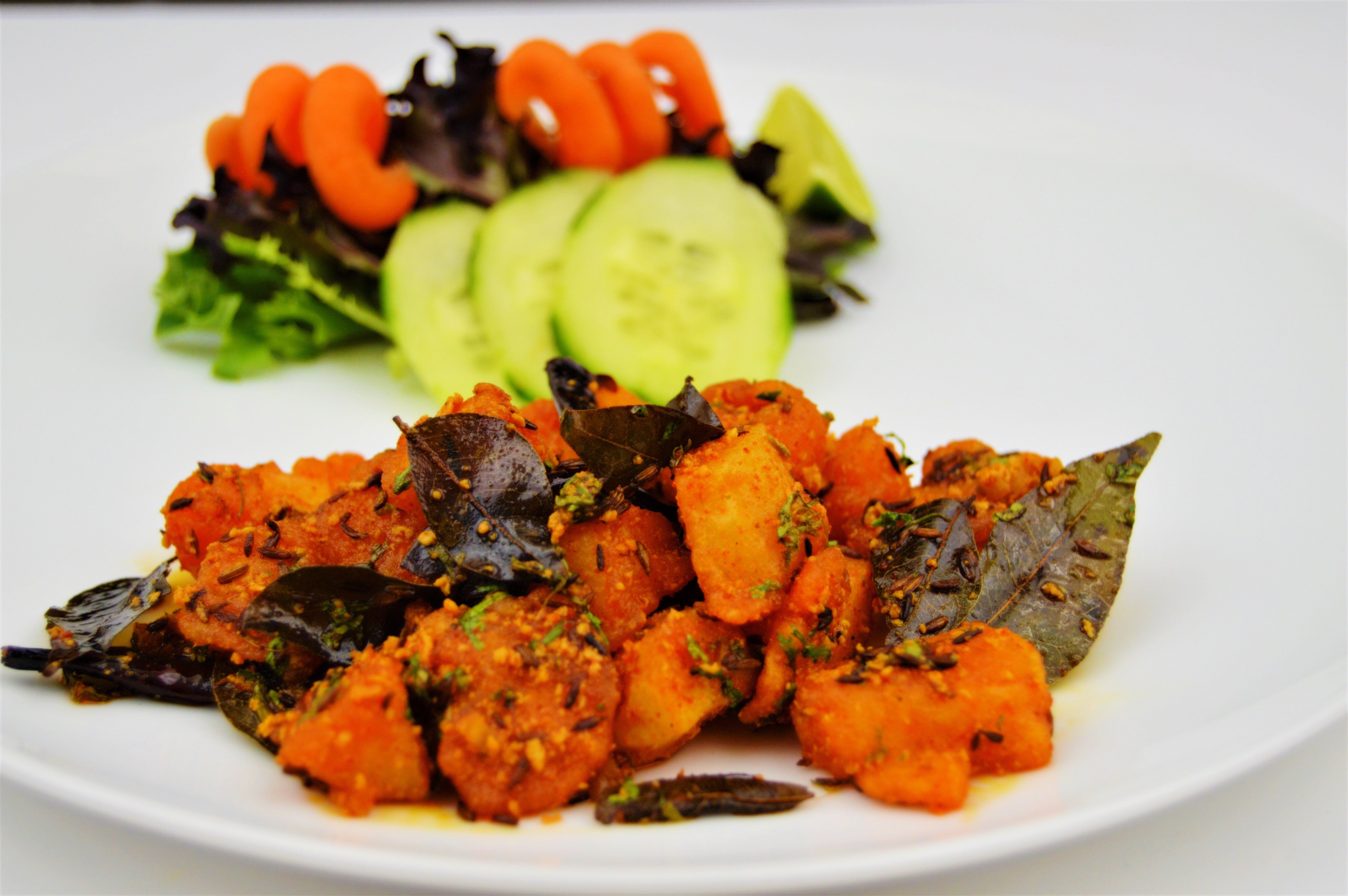 Potato 65 is a south Indian spicy starter, prepared with deep-fried battered potato cubes flavoured with red chillies,curry leaves and tossed in yogurt based sauce.