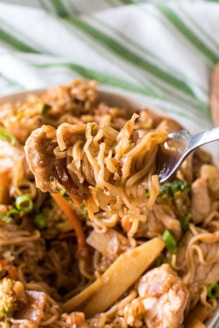 This quick and easy dinner recipe features your favorite Ramen Noodles! Pork Stir Fry is a fun and delicious twist on Ramen Stir Fry. This will be your family’s new, favorite dinner recipe!