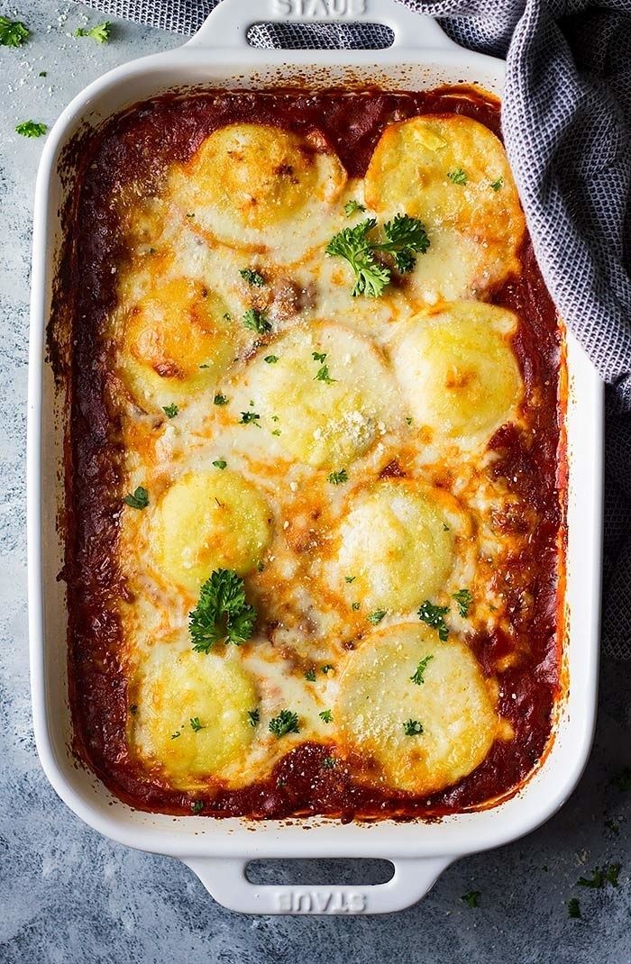 Easy Cheese Ravioli Lasagna ~ This Easy Ravioli Lasagna is an Easy Dinner Recipe that is Hearty, Comforting, and Filled with Cheese and Sausage!