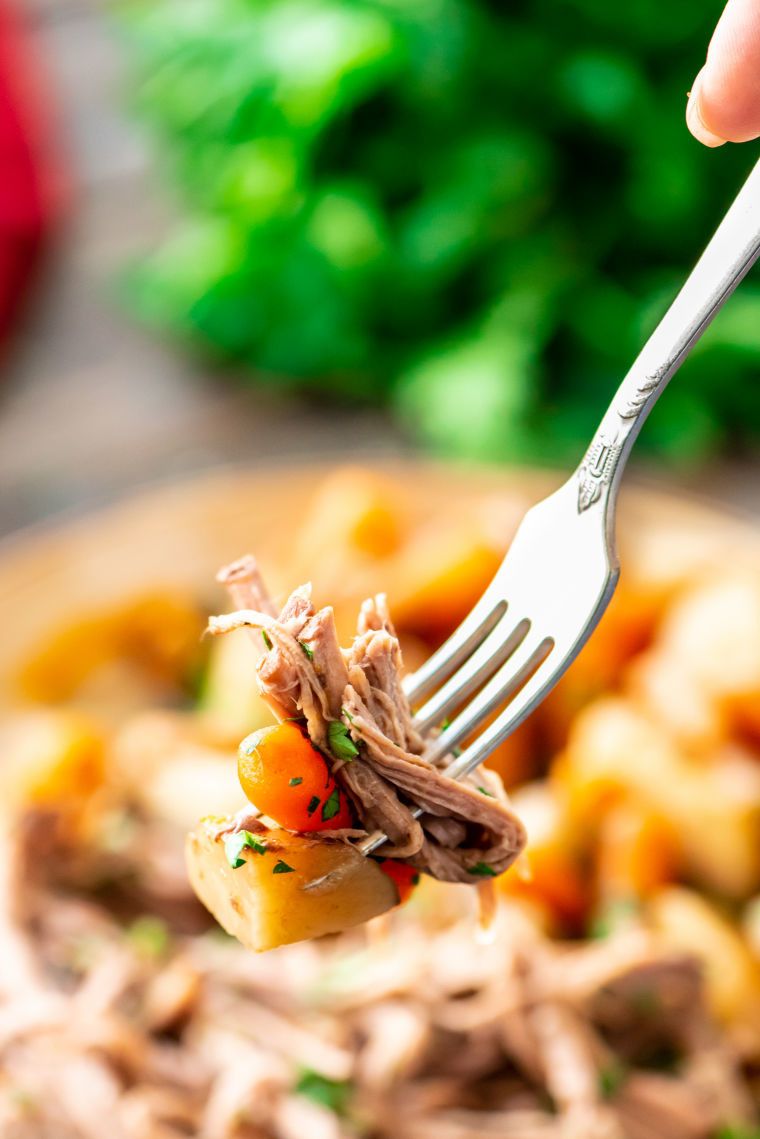 I adore a delicious Crock Pot recipe especially when it’s this amazing Balsamic Crock Pot Roast Beef with potatoes and carrots. You put the beef roast in the slow cooker in the morning along with your vegetables. Then you top it with a mouthwatering Balsamic mixture and let it cook all day. The result is a melt in your mouth roast that is tender and falls apart, plus carrots and potatoes. It’s an entire meal in your Crock Pot. Slow Cooker Pot Roast is perfect for busy weeknight dinners!