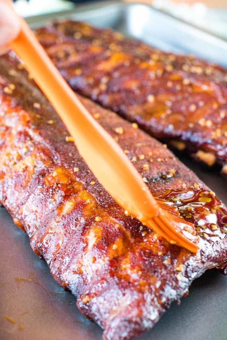 These smoked ribs are so delicious using the 3 2 1 ribs method. They literally fall off the bone after being smoked on an electric pellet grill. Smoking ribs doesn't get easier than this which is perfect for beginners. If you just got a Traeger or are new to smoking meat start with these delicious ribs first! They are prepared with a dry rub, then placed on the smoke, brushed with BBQ sauce and then enjoyed by you!