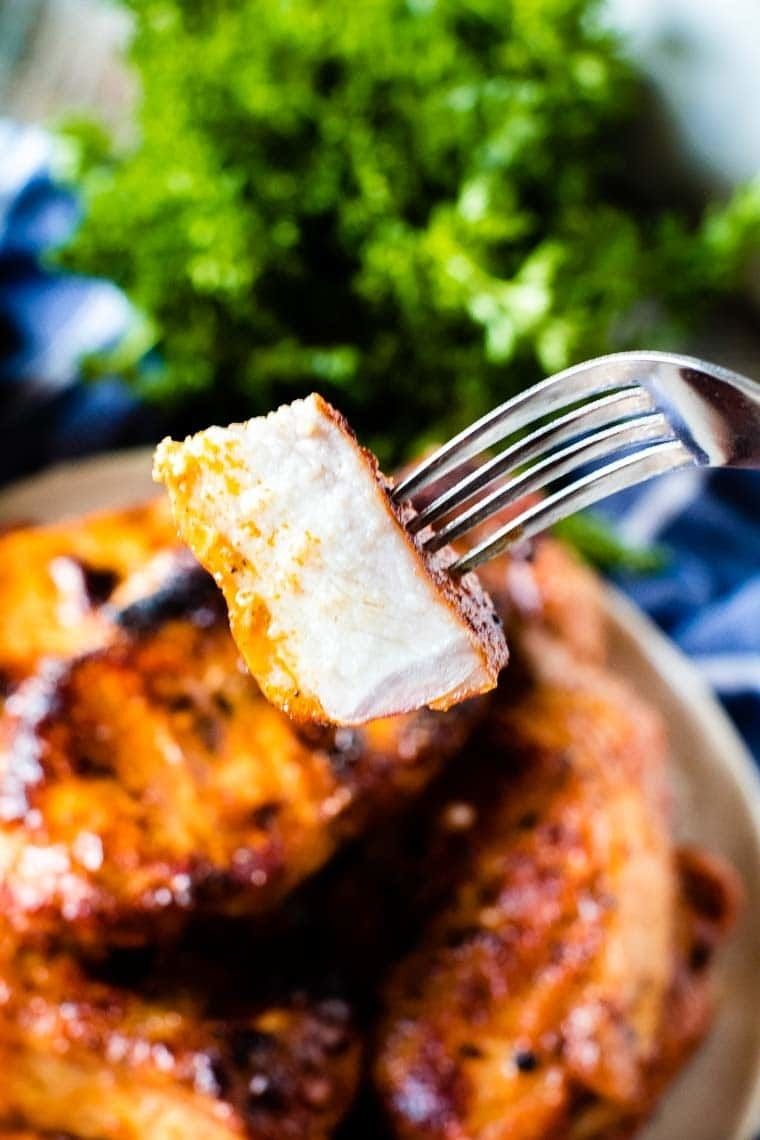 - Sprinkle pork chops with rub and massage into meat on both sides.