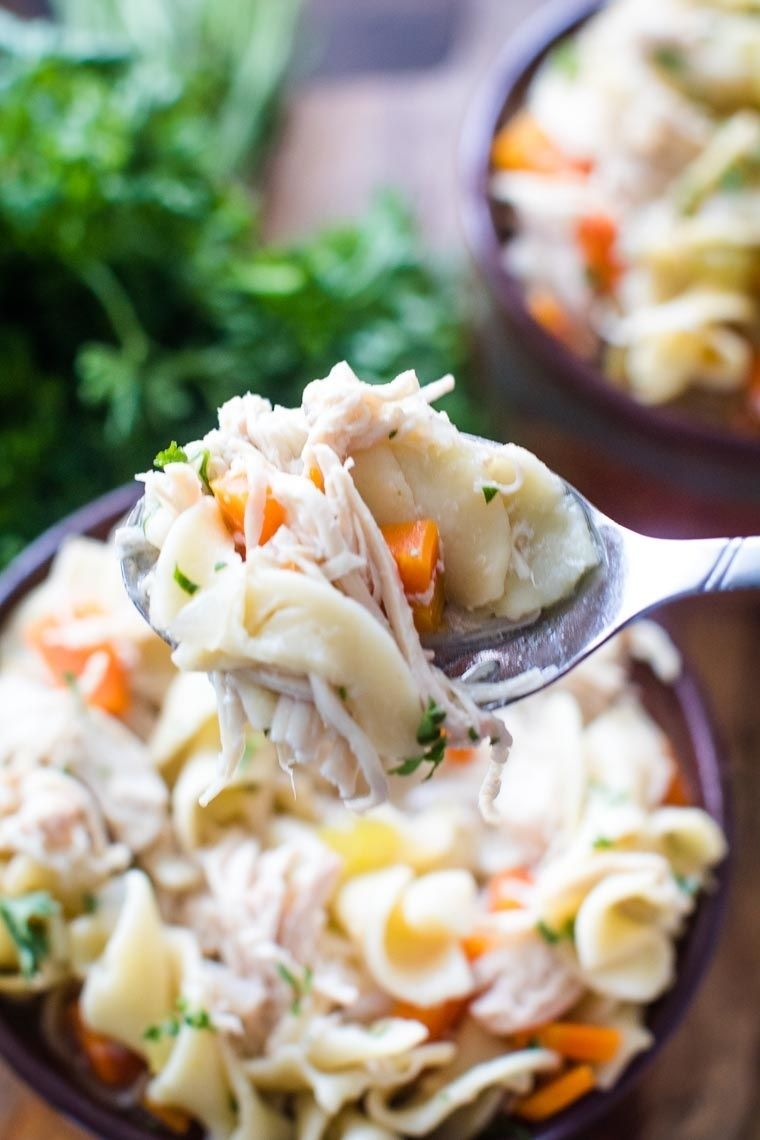 A delicious, hearty, comforting Crockpot Chicken Noodle Soup! Once you make this easy homemade soup recipe you won’t go back to a can of soup. I love warming up with a big bowl of chicken noodle soup on cold winter day or when I’m feeling under the weather. This slow cooker chicken noodle soup is amazing and a family favorite. It’s the BEST!