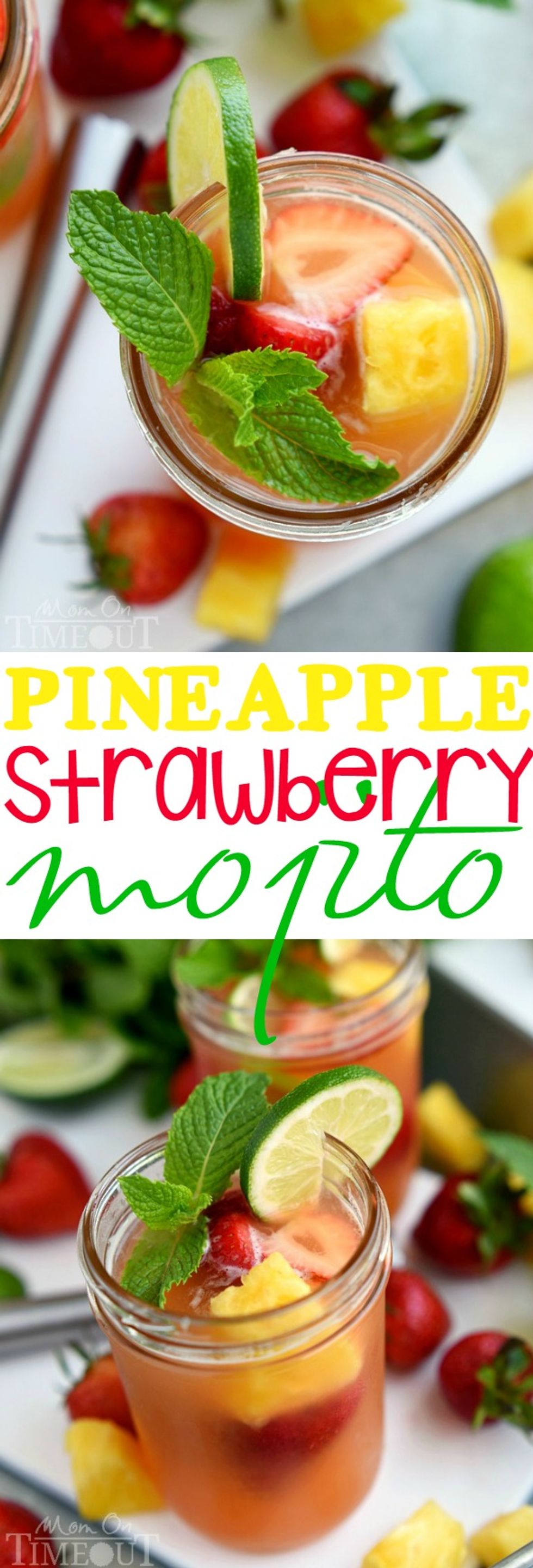 Perfectly cool, sweet, and SO refreshing, this fruit-infused Pineapple Strawberry Mojito cocktail has it all! Perfect for summer!