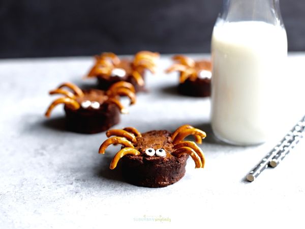 Scare up a tasty good time with these Brownie Spiders! An easy Halloween treat idea that's perfect for parties and playdates!
