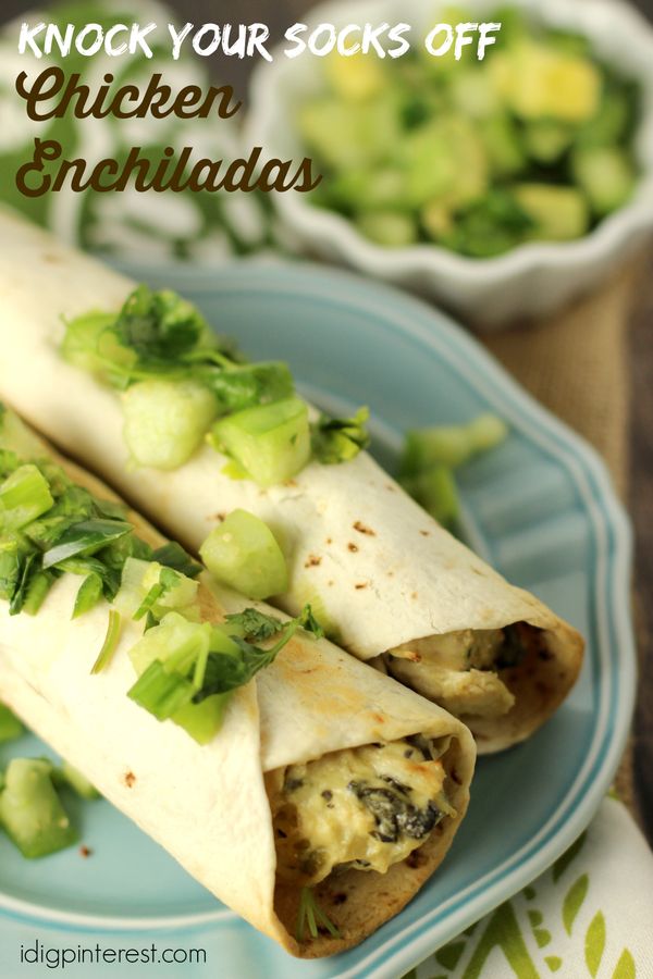 These creamy, slightly spicy Chicken Enchiladas with the yummy flavors of cilantro, lime, green chiles and Pepperjack cheese...will totally knock your socks off!