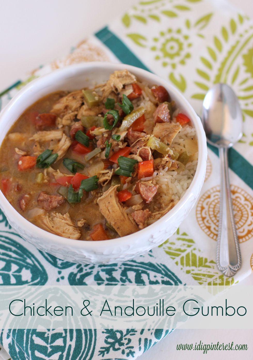 I adapted the original recipe to save on calories, but the flavor in this Gumbo is still fantastic. I didn't have Andouille sausage, so I subbed in Kielbasa, and it was deliciouso!