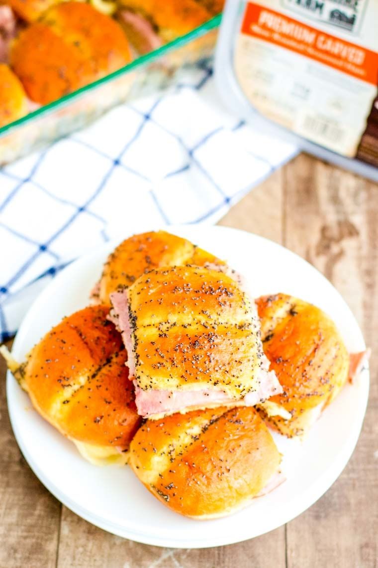 Need an easy dinner idea, quick tailgating recipe, or a delicious holiday party appetizer? Then you are going to love these delicious Ham & Cheese Sliders! This recipe is great for every event, party, or even for an after-school snack! Slider buns layered with ham and Swiss cheese, then topped with a sweet butter and poppy seed topping. The buns are soft on the inside and slightly crispy on the outside from baking. There's tons of flavor from the juicy ham, savory cheese and butter topping. Loaded with mustard, poppy seeds, onions and Worcestershire sauce and bursting with flavor. You are going to love these sliders!