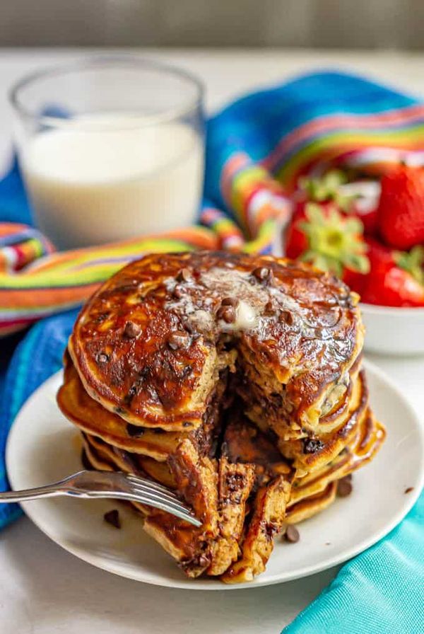 These homemade granola bars with chocolate chips are thick, soft, chewy and perfect for a healthy snack to fill you up. Just one bowl and 10 minutes prep!