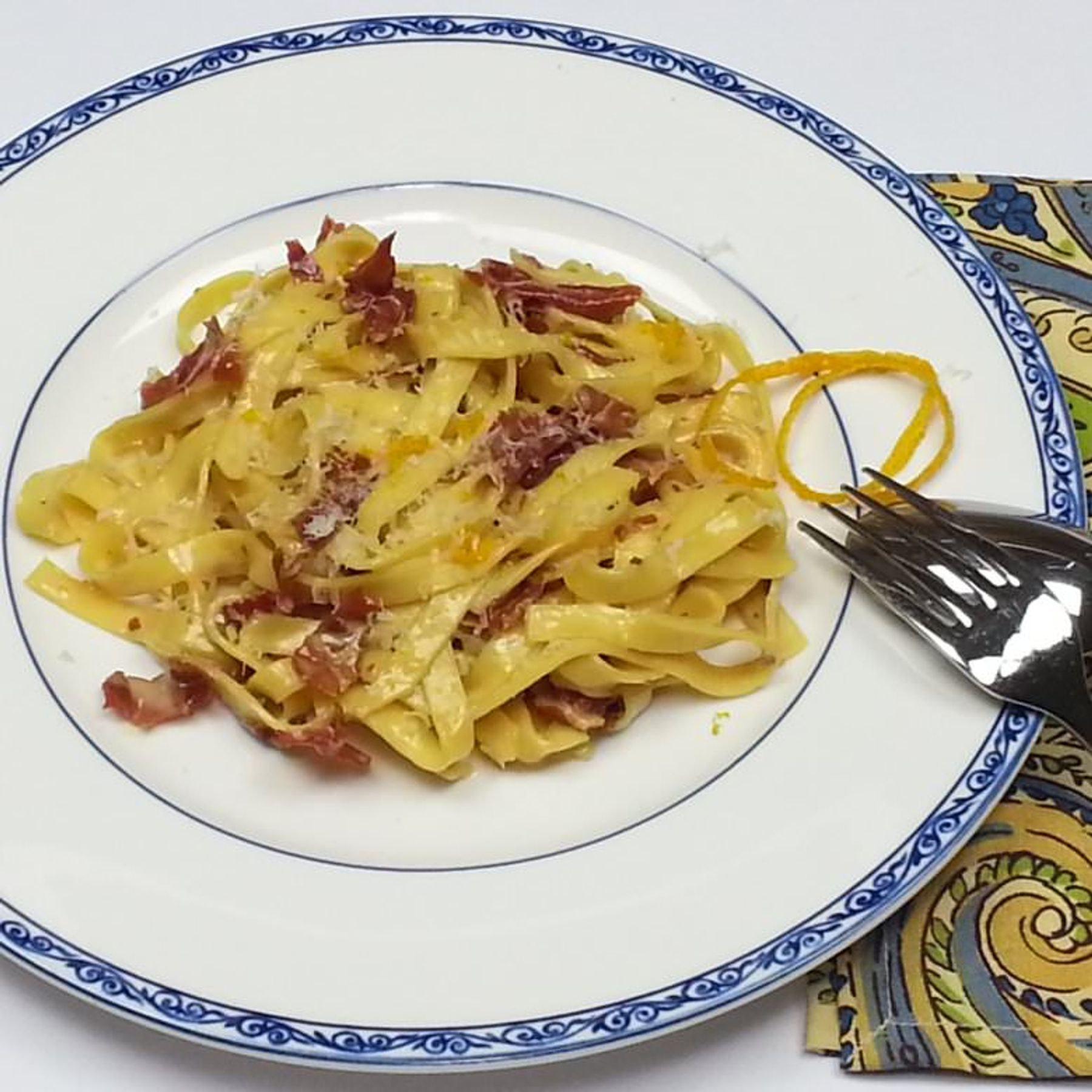 2. Melt butter in a skillet and add 2 ounces of Prosciutto. Bake prosciutto until crispy and drain on paper towel.