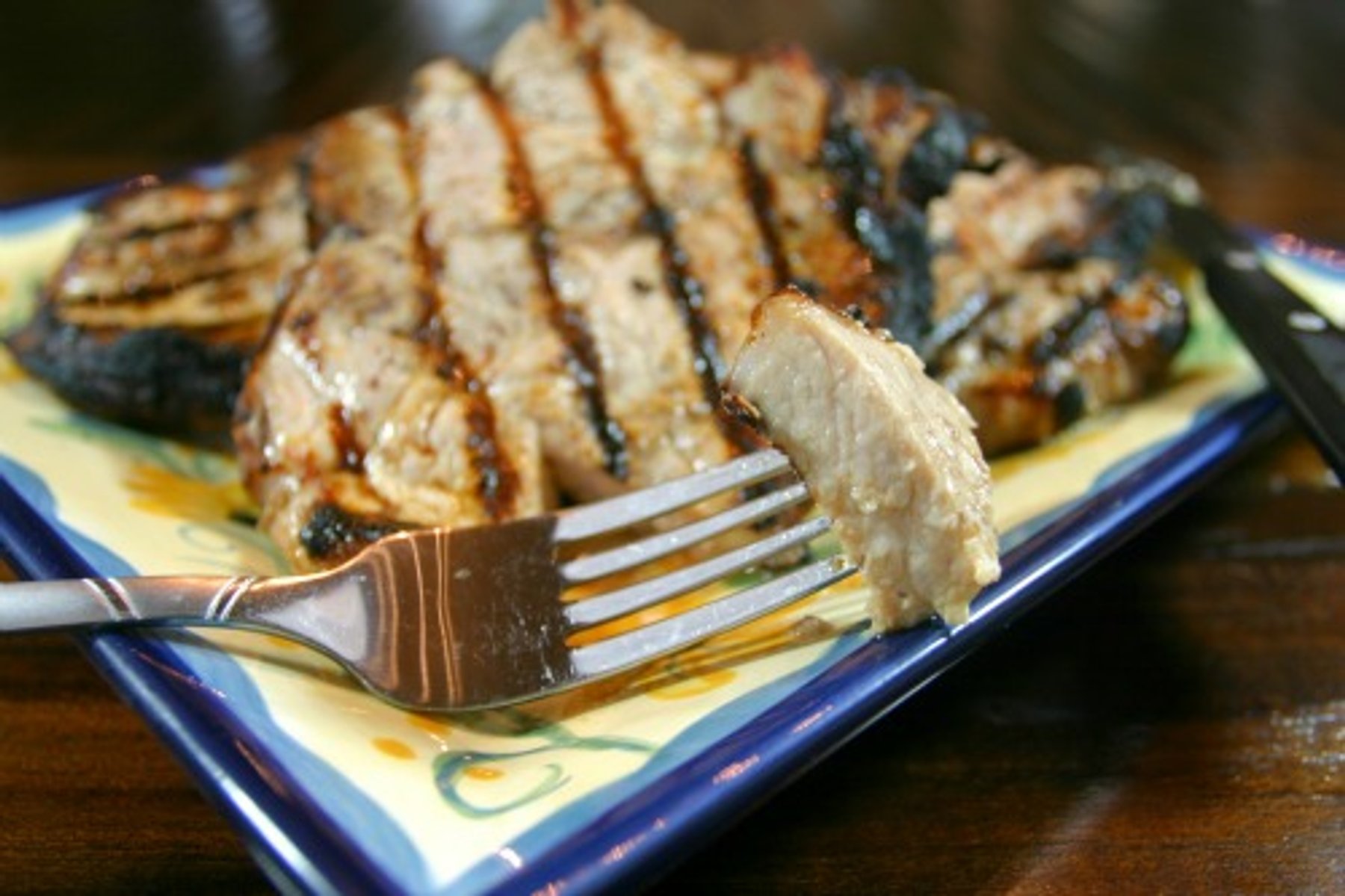 Center cut pork chops marinated with greek yogurt, tahini and spices. Then grilled for a moist, flavorful dinner.