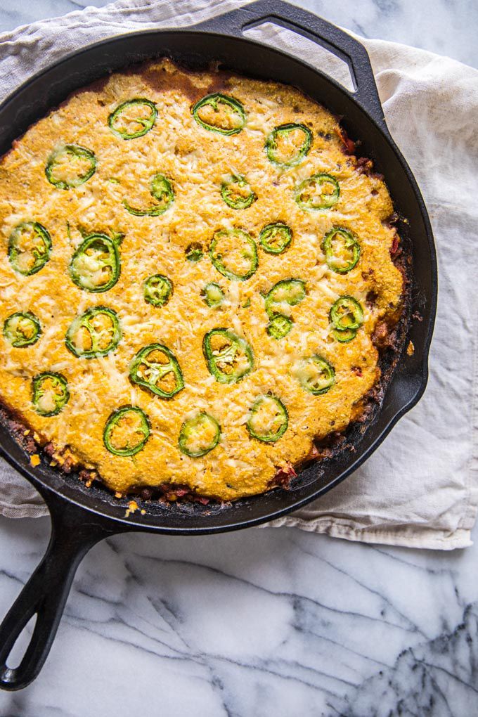 Tamale Pie with Beans + Jalapeno Cheddar Cornbread (Gluten Free)