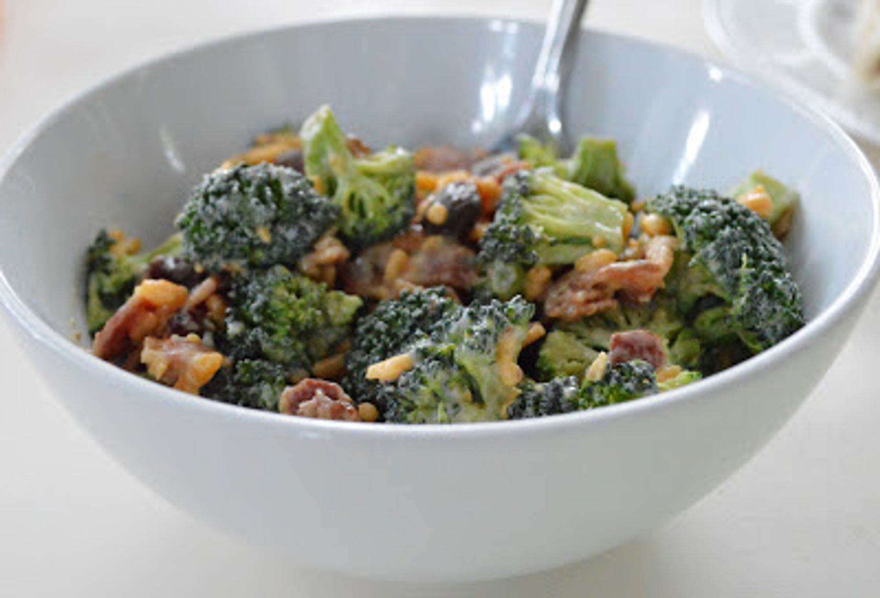 Chop broccoli off of the stems into bite size pieces. Toss the broccoli with the bacon, cheese and raisins in a medium bowl. Whisk the mayonnaise, vinegar, sugar, milk and soy sauce in separate bowl and...