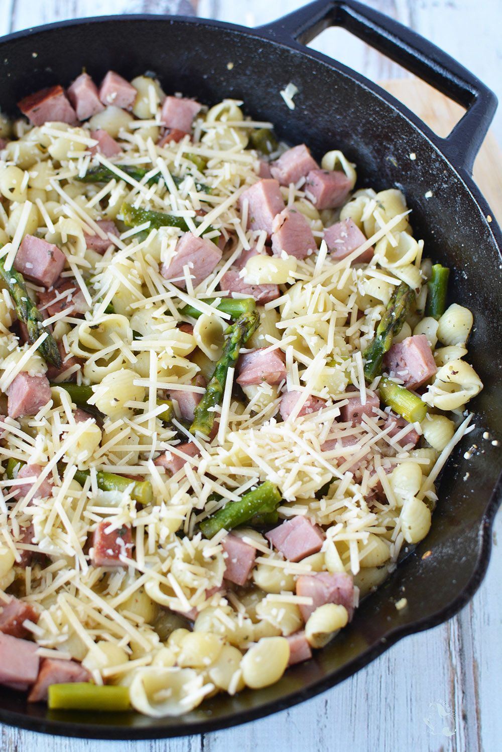 Tasty Asparagus and Ham Pasta Skillet Dinner Recipe