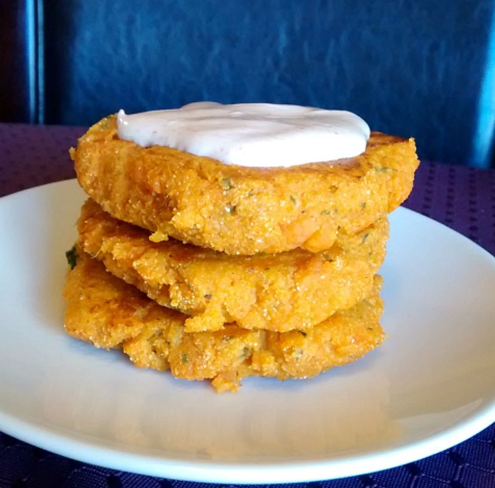 A super quick and flavorful appetizer with a yummy dipping sauce! These Sweet Potato Fritters are great for using up leftovers and can be made ahead of time for eating later!