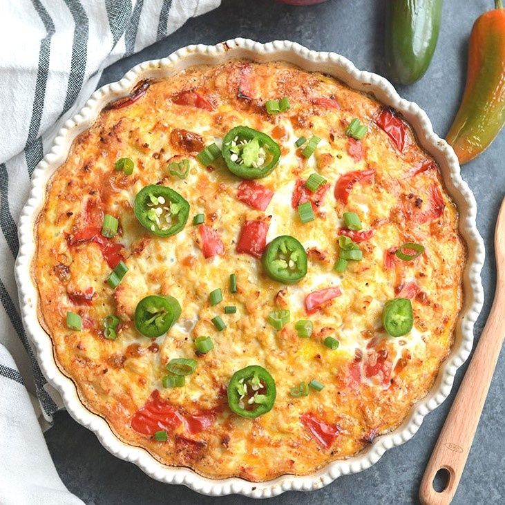 Tater Tot Breakfast Bake! Loaded with chicken, eggs, bell pepper & tater tots, this recipe is simple to make, hearty & tasty. Perfect for a weekend brunch and feeds a crowd too! Gluten Free + Low Calorie