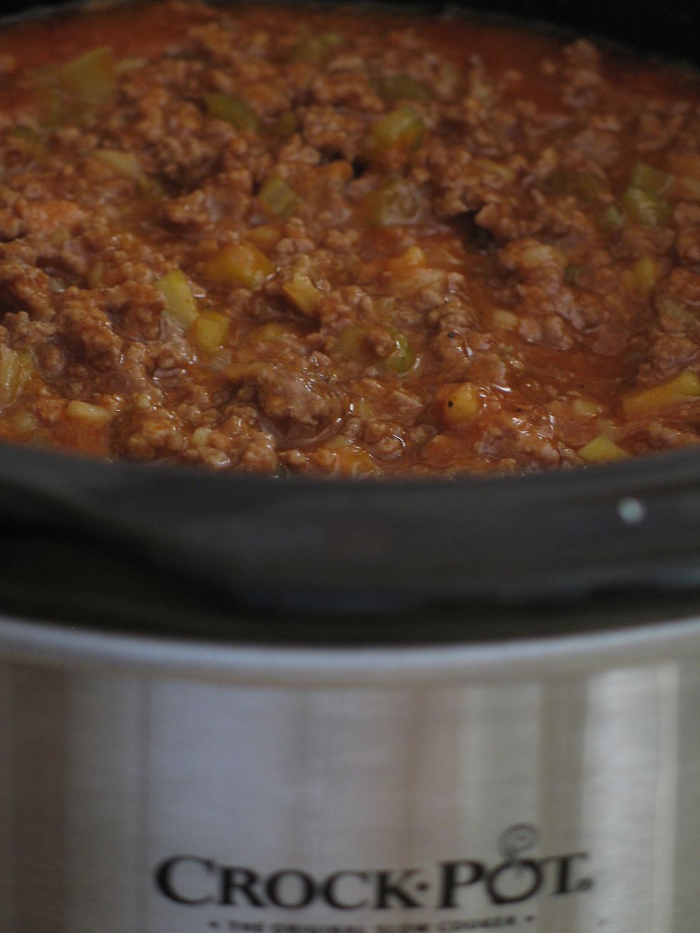Place the browned ground beef and all the remaining ingredients in a crock pot. Place on high for 2 hours and then turn to low for an additional 2 or more hours.