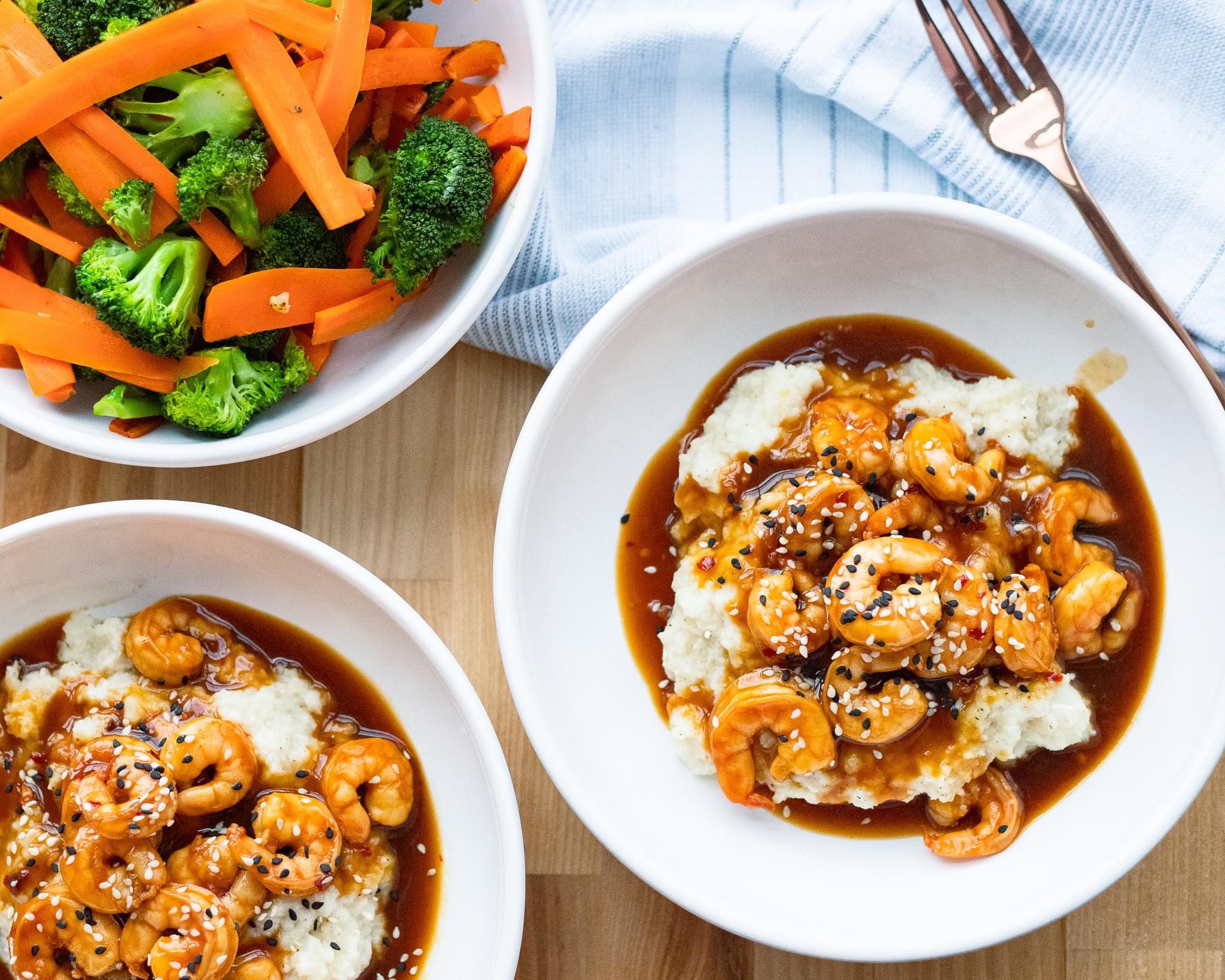 Teriyaki Shrimp with Horseradish Mashed Cauliflower