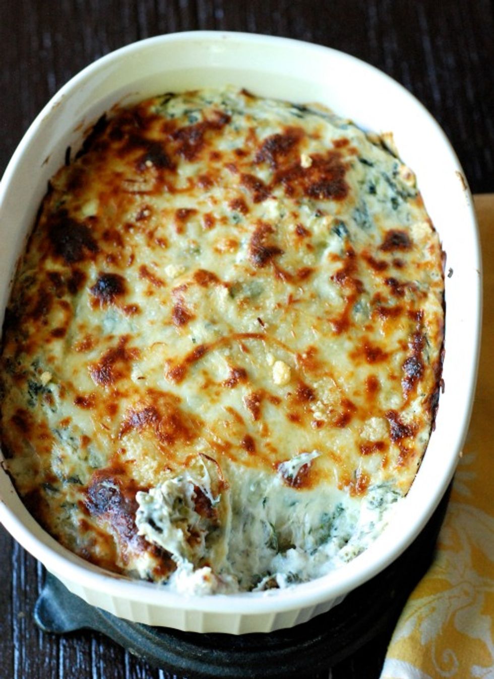 Creamy Spinach Artichoke dip with roasted poblanos and jalapeños