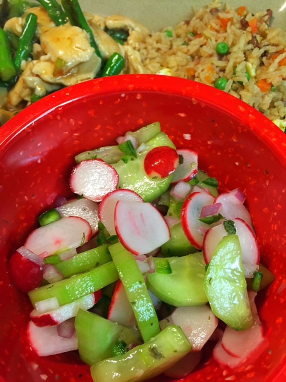 This Thai cucumber salad is fresh tasting and easy to make. It tastes very similar to the cucumber salad we get at our local Thai restuarant when we order Chicken Satay.