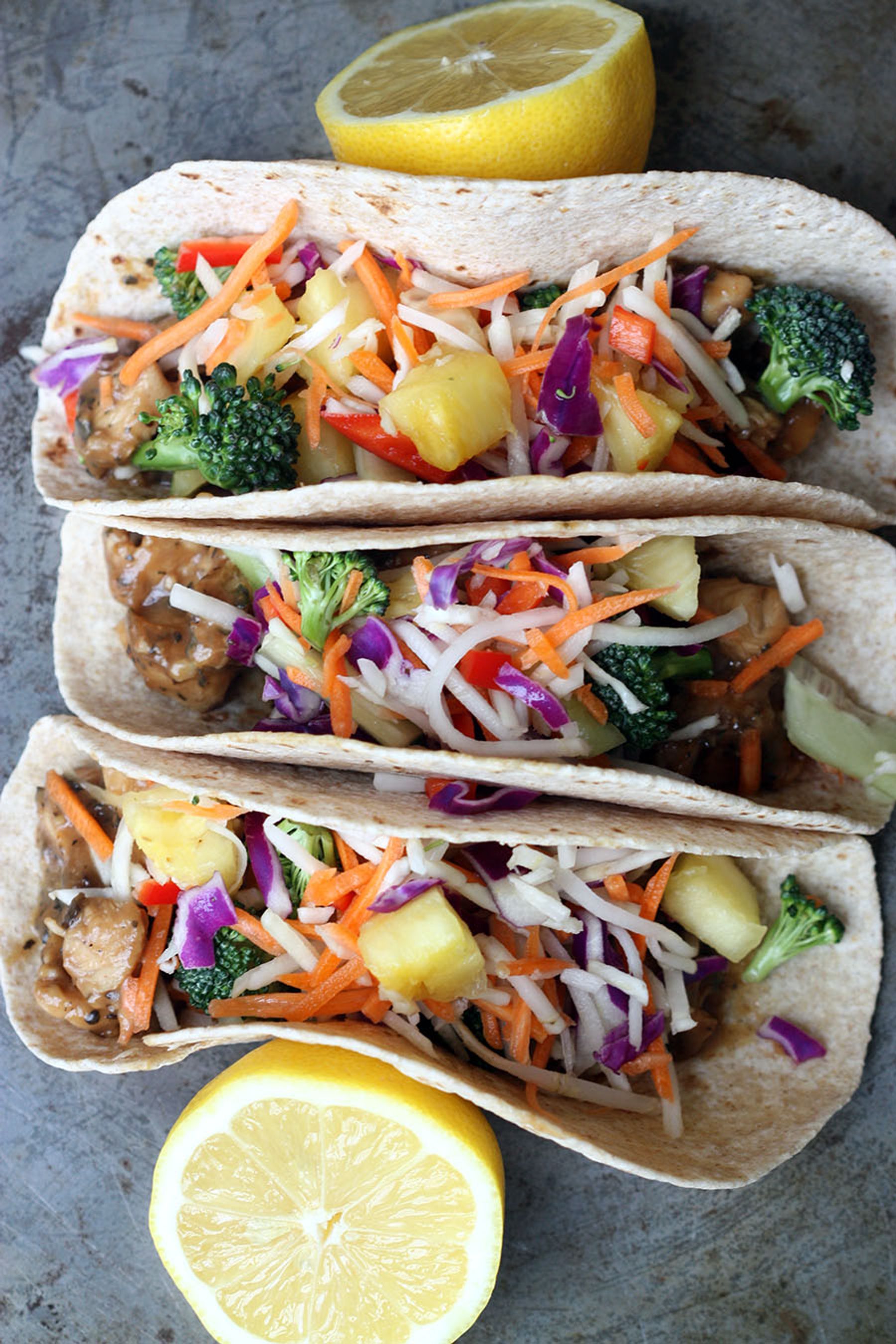Thai Peanut Chicken Tacos with Pineapple Slaw