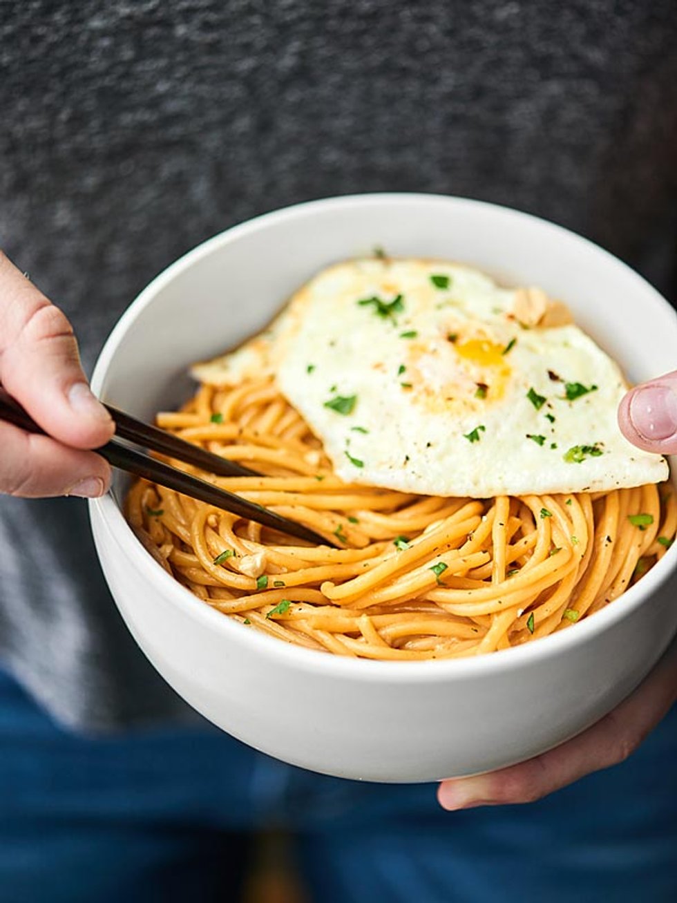Thai Peanut Noodles - 10 minute, vegetarian dinner with noodles, eggs, and a creamy (yet not totally unhealthy) peanut sauce!