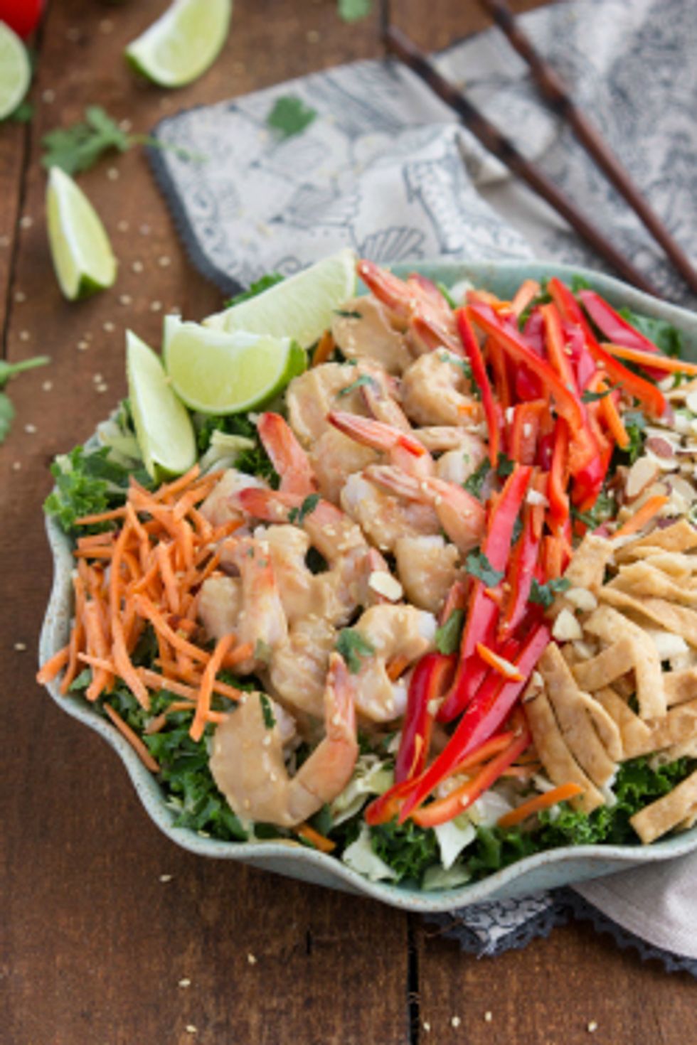 Preheat the oven to 400 degrees F. Line a large baking tray with parchment paper. Rinse the shrimp under cold water for a few minutes and then toss in olive oil and with salt and pepper. Spread evenly on...