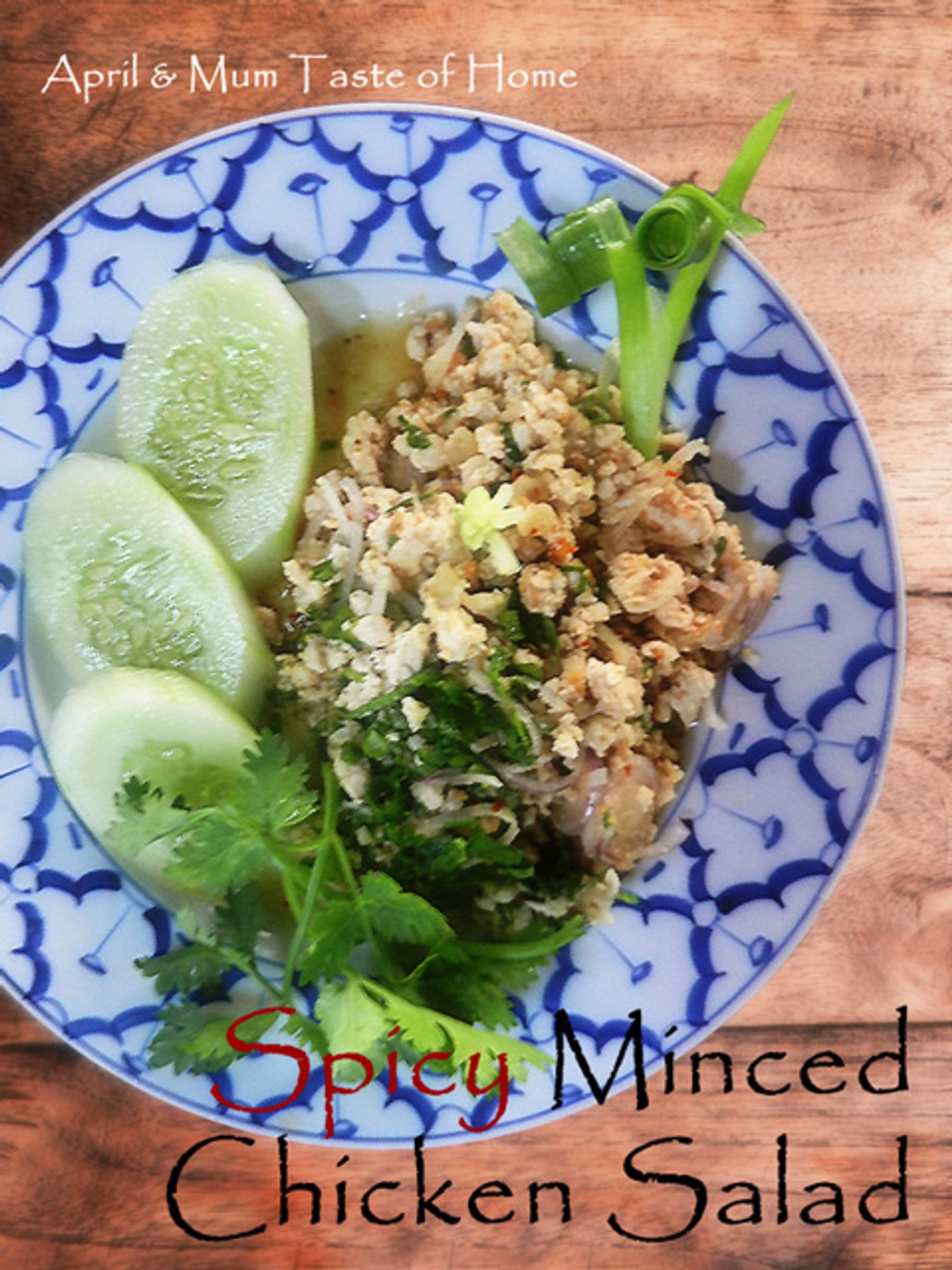 Blend the chicken, shallots, ginger, fish sauce, lime juice and chili powder. Cook the mixture over medium heat for several minutes until the chicken is well done. Turn off the heat and take out the mixture. Add the coriander, spring onion, chopped mint and grated sticky rice to the chicken mixture, and stir to combine.