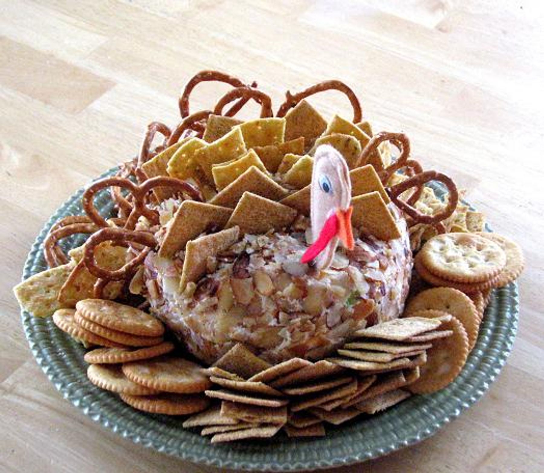 We make a turkey cheese ball EVERY year for Thanksgiving. The kids love it. Not only is it a fun crafty food, it tastes really good too!