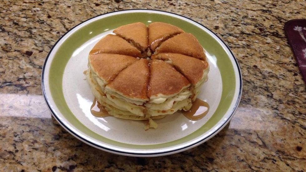 Here's a great Saturday morning breakfast that both you and anyone can enjoy. My tip to you is to butter the pancakes top and bottom, cut them into 8ths, and then pour the syrup on top. That's a family trick of mine to eat the best tasting pancakes you'll ever have. The instructions may be a little different than what you're used to but it's works. The most important thing you must know for pancakes is how to achieve the right cooking temperature and I will show you how