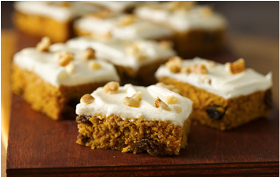 Spread the icing on the bars. Sprinkle with walnuts. To get the bars, divide in 7 rows of 7 columns. Keep in the refrigerator.