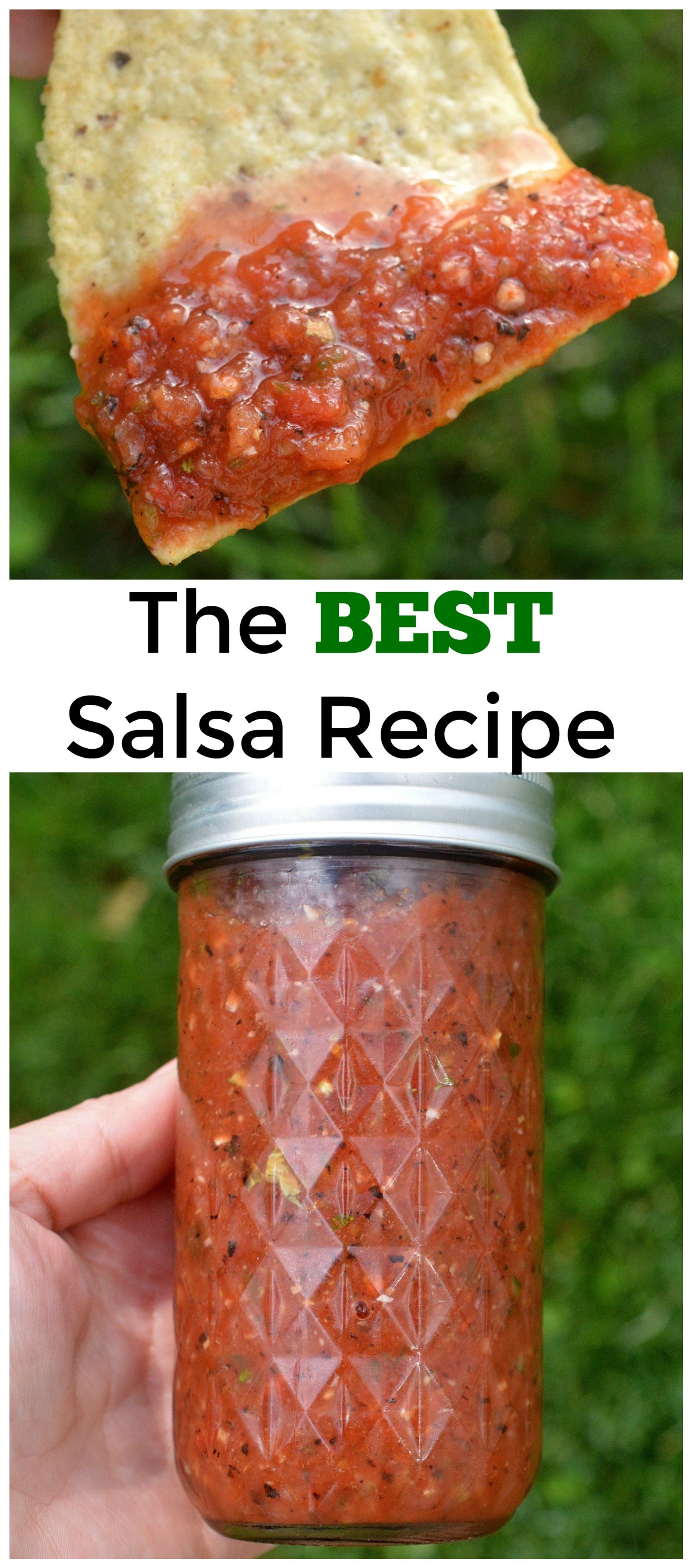This is The BEST Salsa Recipe! All you need are a handful of ingredients, 5 minutes and a big basket of chips! This is the easiest salsa recipe!