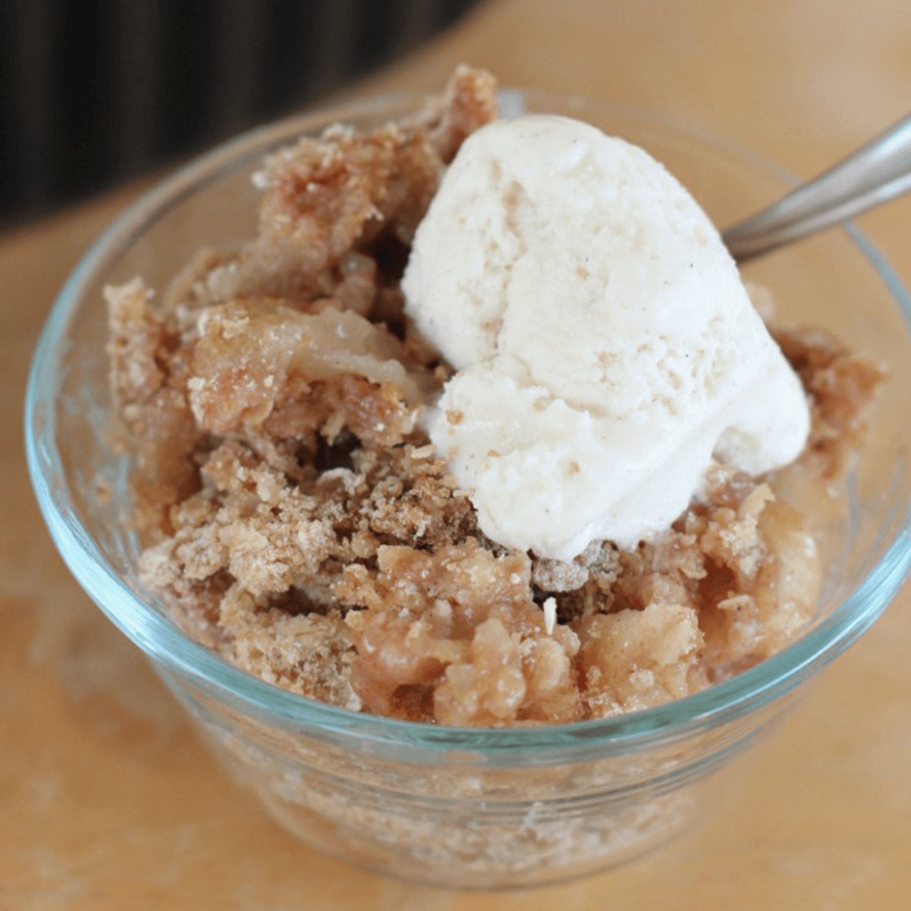This is seriously the BEST apple crisp recipe ever! Loads of topping and a scoop of vanilla ice cream turn this all-time favorite into a comforting treat.
