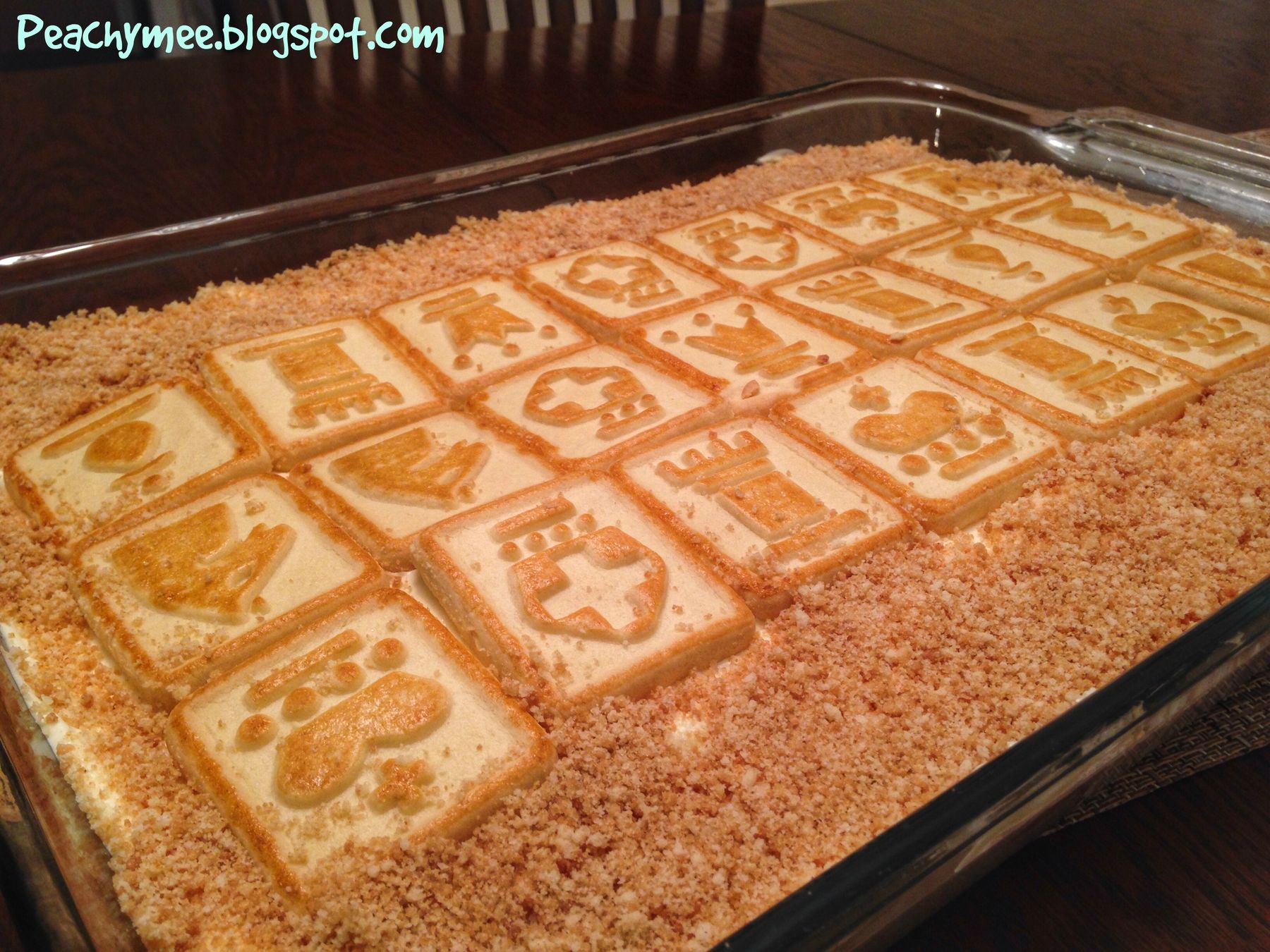 Line the bottom of 13 by 9 inch dish with bag of cookies and layer bananas on top.