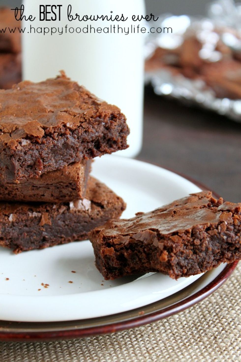 These are my interpretation of the BEST brownies ever! The perfect combination of fudgy center with flaky-cakey tops, and the most wonderful flavor ever! There are only a few ingredients and you probably have them all in your kitchen right now. What's stopping you?!