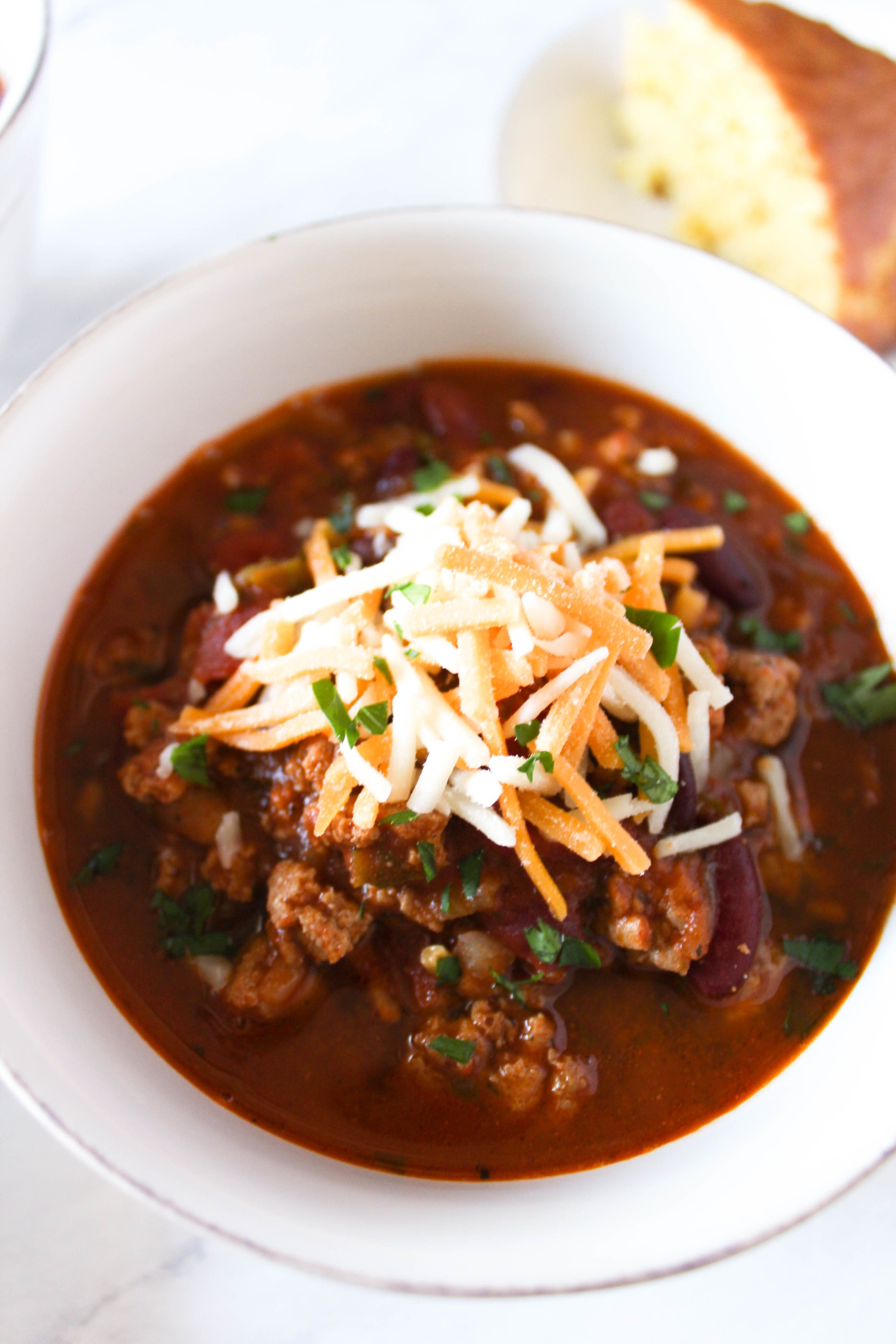 This chili is full of flavor and is the ultimate comfort food on a cool day or night. It has the perfect amount of seasoning, perfect amount of heat and is super easy to throw together!