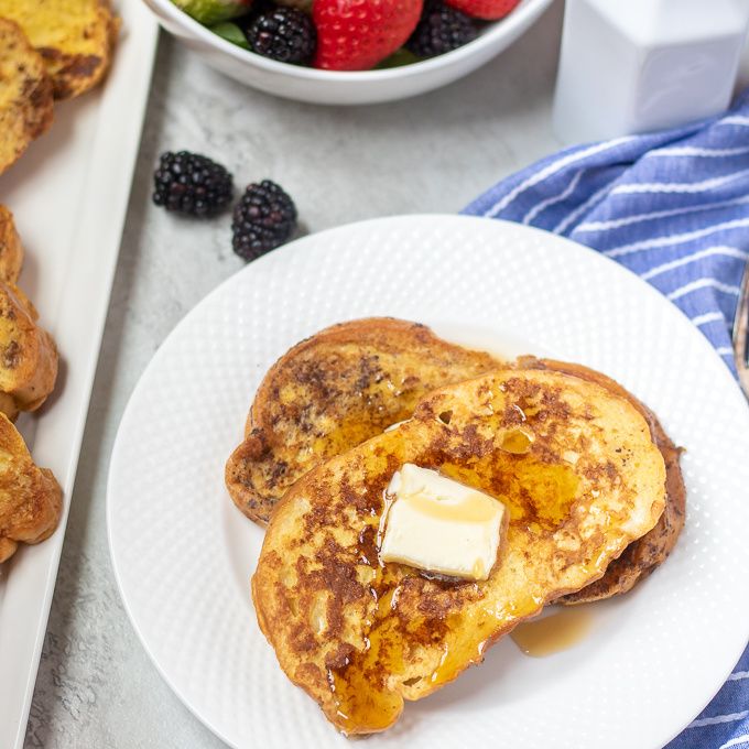 This is the best recipe for traditional French Toast! Thick bread is soaked in a perfectly sweet egg custard and pan fried to perfection.