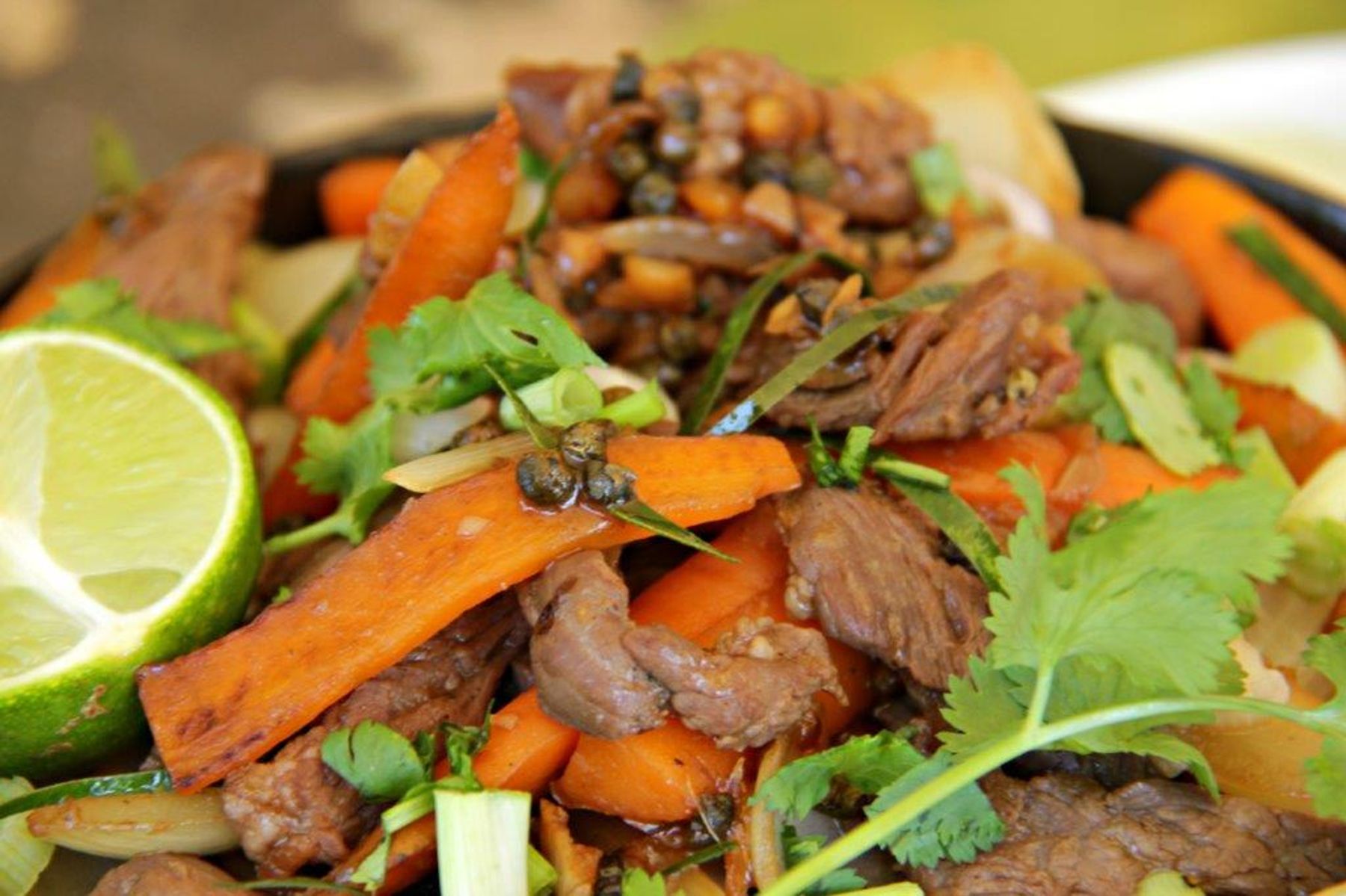 In a bowl, mix together the thinly sliced beef, tamari and green peppercorns. Refrigerate for 1 to 4 hours.