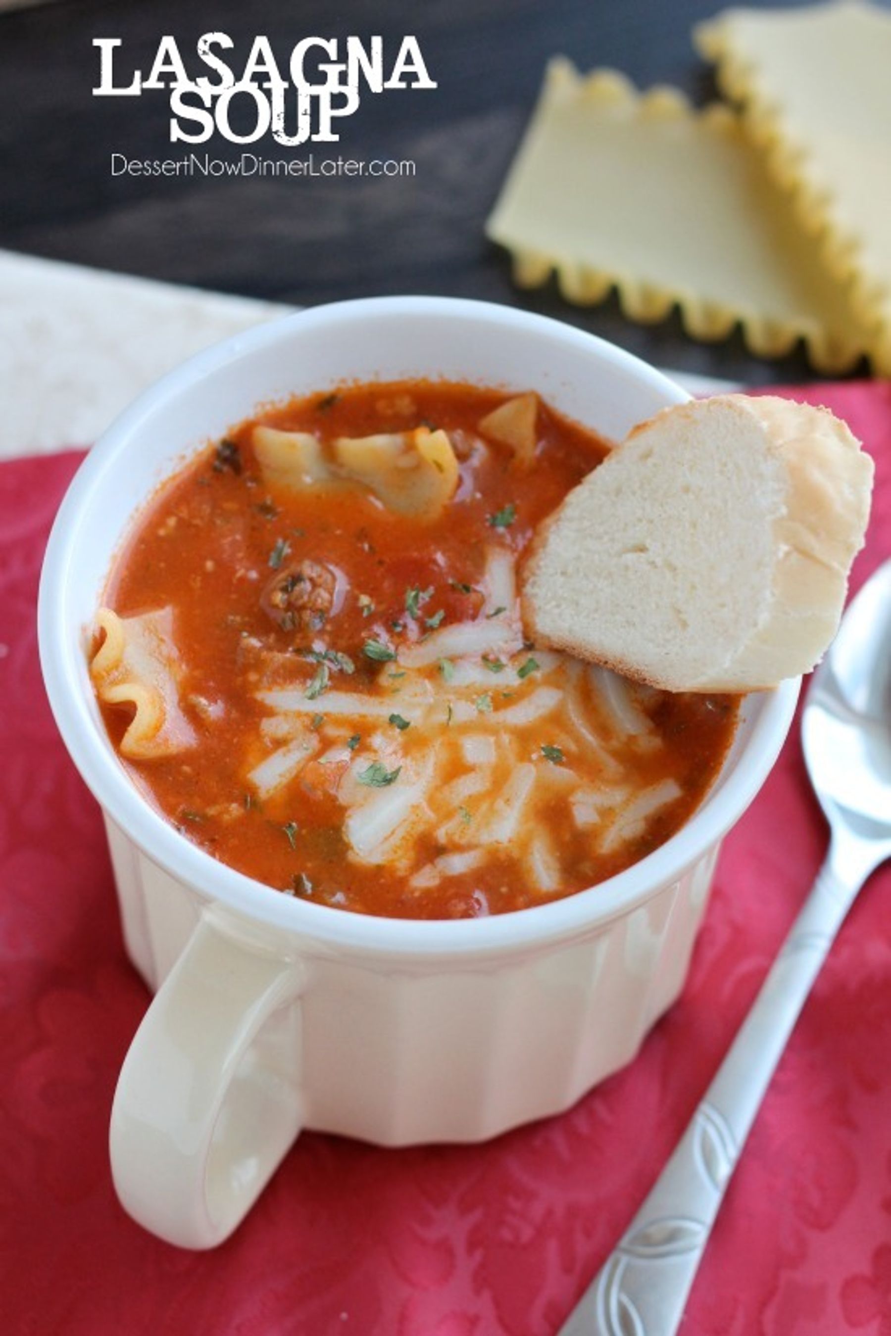 This lasagna soup, is thick, creamy, and with the sausage and fennel, tastes just like a meat lasagna!