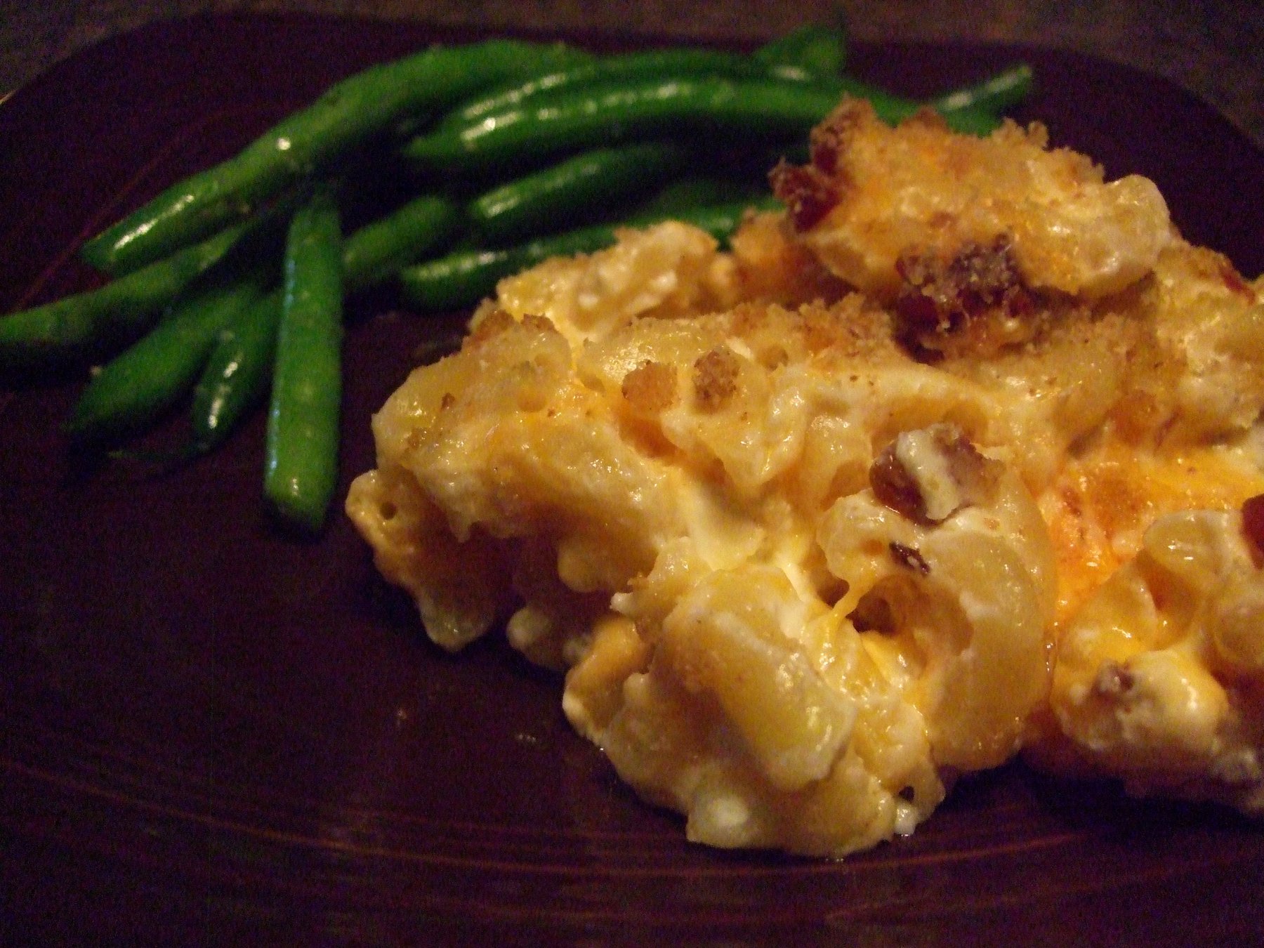Delicious creamy homemade macaroni and cheese is made even more delicious with bacon.