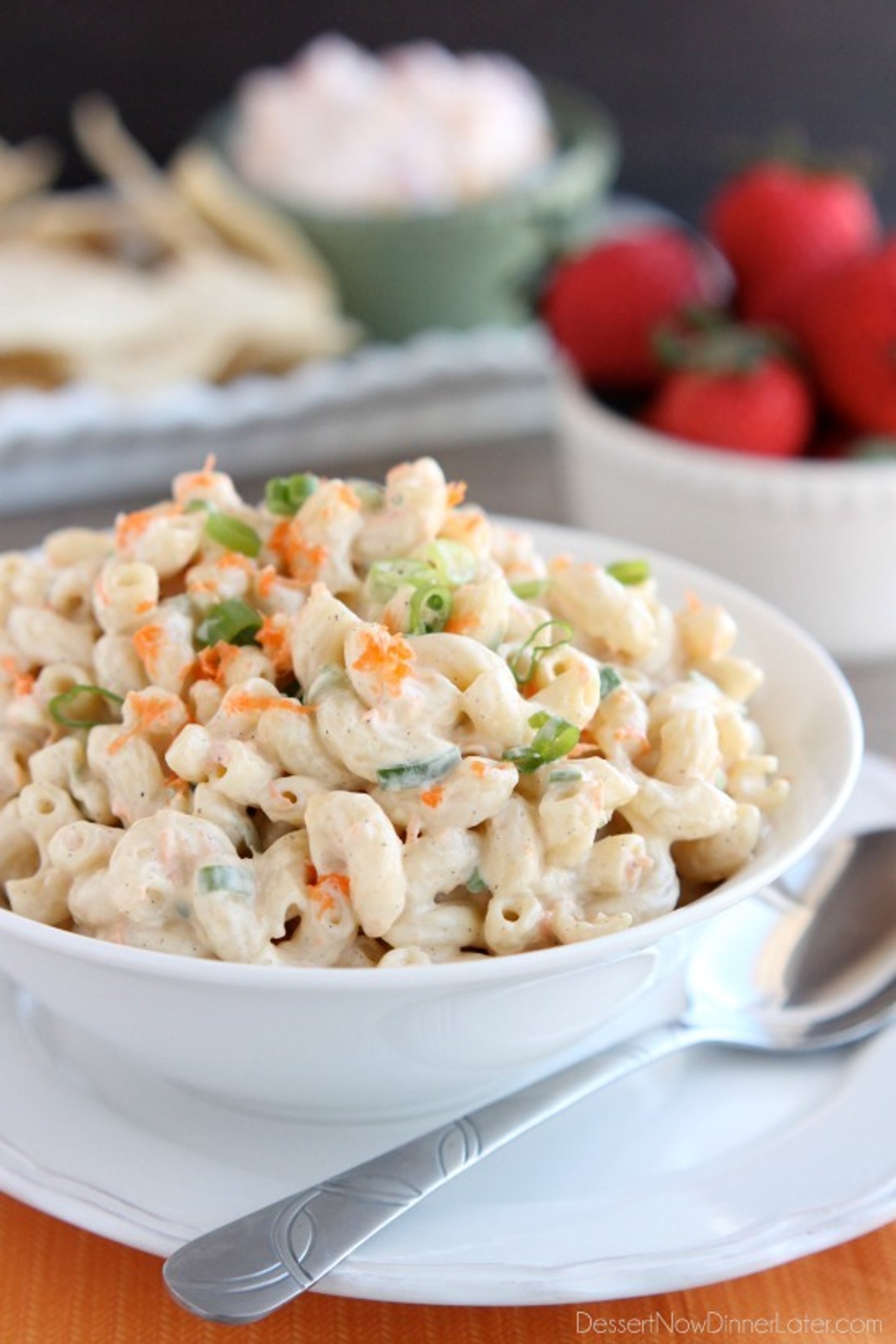 This Hawaiian-style macaroni salad is super creamy, lightly sweet, and truly the BEST macaroni salad out there! The perfect side dish for any party or potluck!