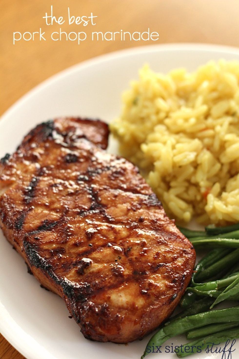 During the summer months, I rarely use my oven . . . most of my cooking happens outside on the grill. Our cute mom was grilling our dinners year-round; I can still remember one winter when she shoveled a path in the snow so that she could grill some chicken for Sunday dinner. :) My mom has been using this recipe for years (she thinks that she cut it out of the newspaper a long time ago) and it’s been my go-to pork chop marinade ever since she gave it to me. Pork chops sometimes cook up dry, but