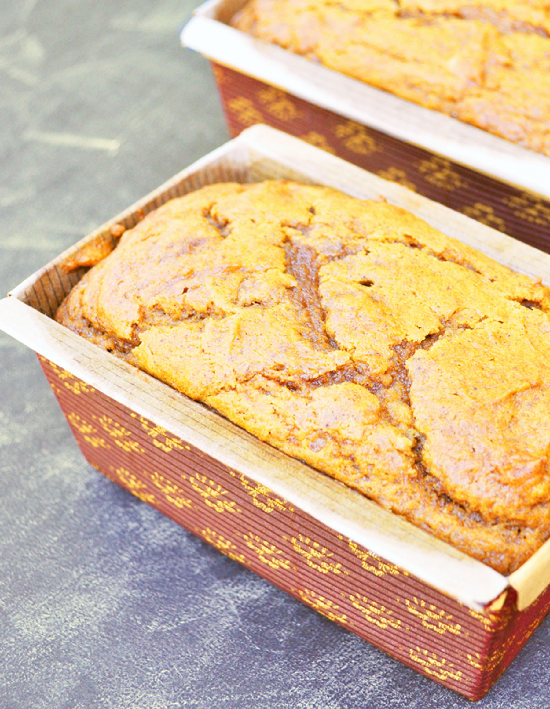 This pumpkin bread is very soft and moist; a perfect complement to a warm cup of coffee or tea. This pumpkin bread also makes makes great gifts for the holiday seasons coming up. This recipe makes makes 1 loaf or 3 2.25 x 3.75 x 5.25 loaves.