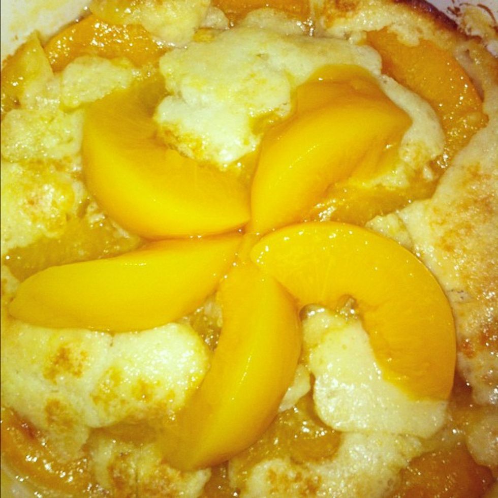 This is a variation of Paula Deen's peach cobbler recipe from her Lady and Sons cookbook. My mama started making this while I was a freshmen in college, and one summer when I came home, we lived off of it morning, noon, and night! After I got married, I started making it for my husband, but we felt it was a bit too buttery and a bit too sweet. So I cut down on the "bad" stuff and learned how to double it for our family events!