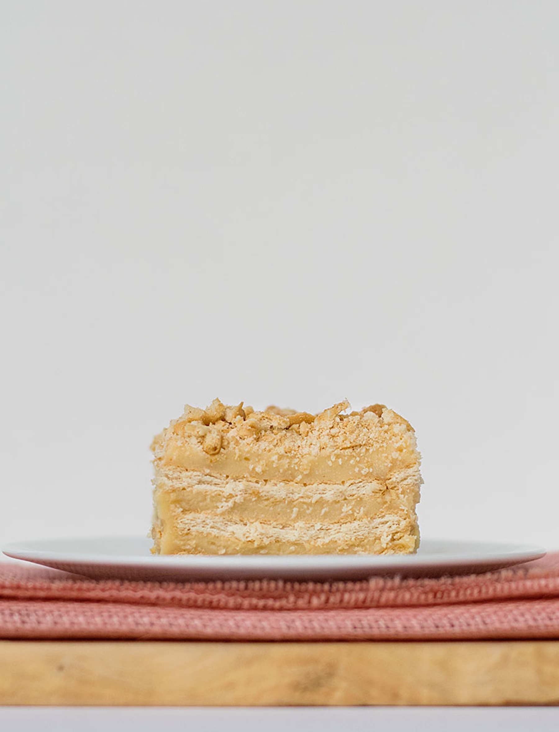 The easy and quick alternative to the famous French pastry. Butter cookies and fragrant custard cream form layers of indulgence!