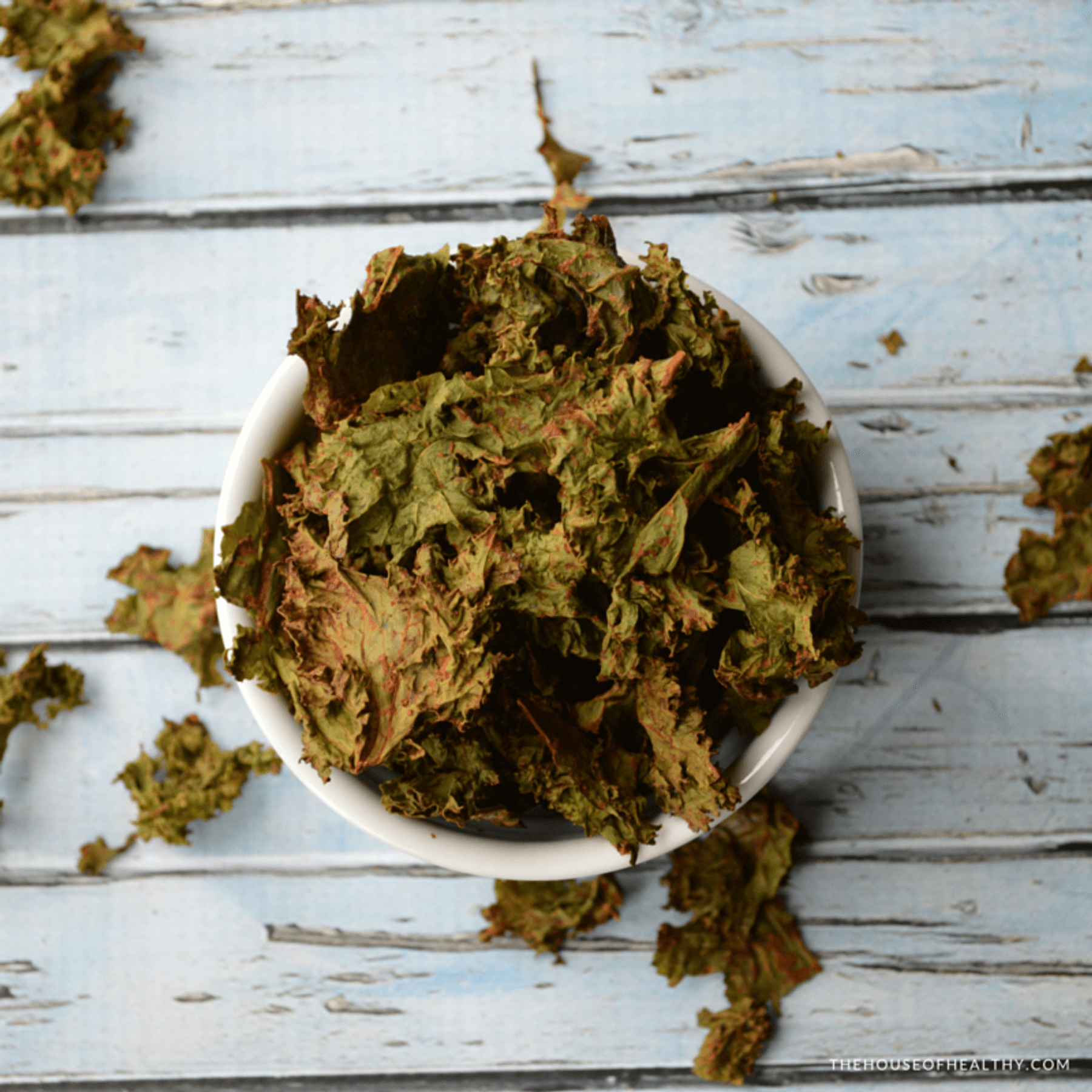 Preheat oven to 300 degrees. Remove the middle stem from your kale leaves. Rip or chop your kale into medium sized pieces (they will shrink when they get dehydrated). Place the kale chips in large bowl and...